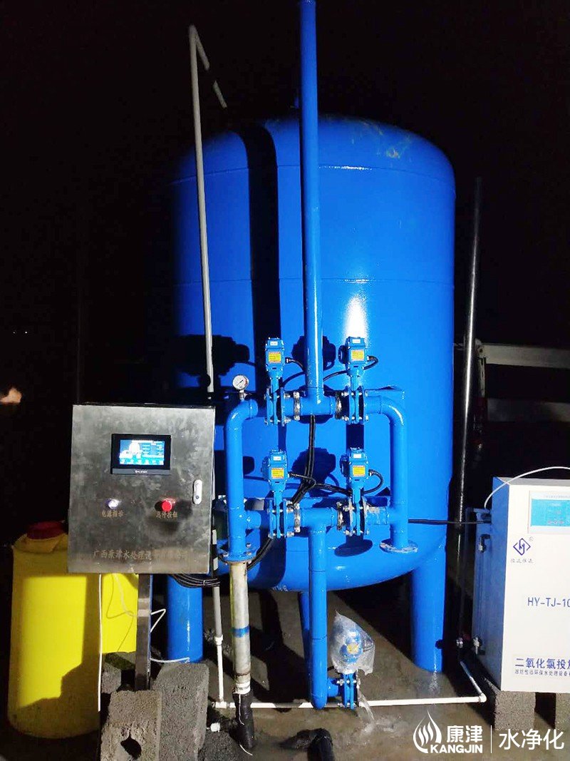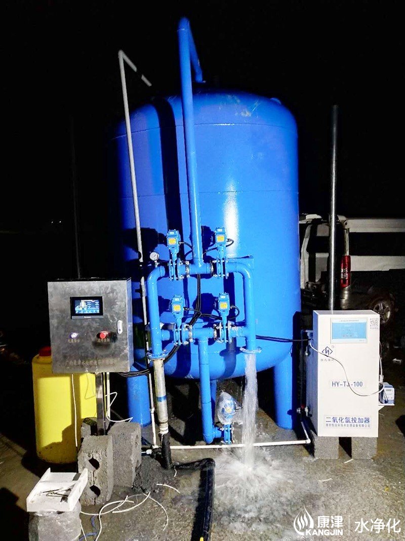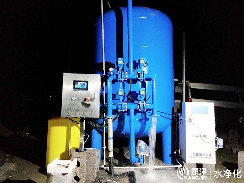 工(gong)藝(yi)流程:井水-絮凝加藥-石英砂(sha)過濾器-二氧化氯消毒