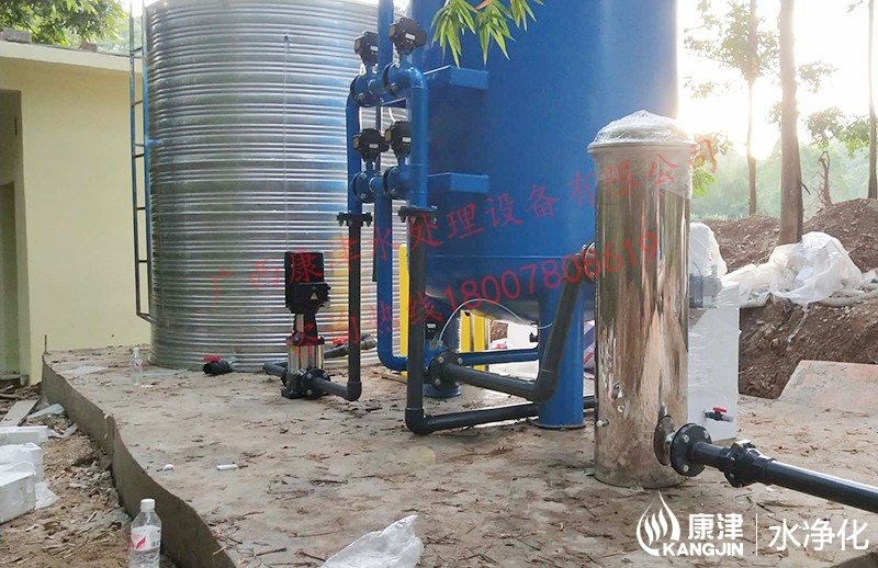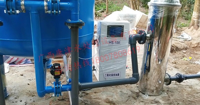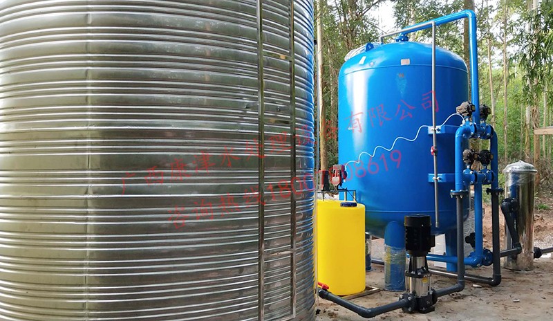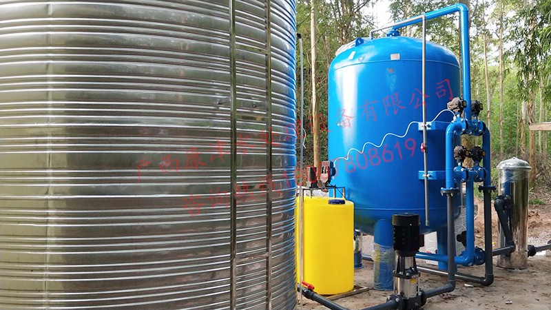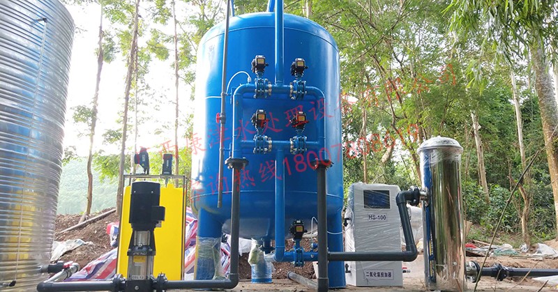 工藝流程:河水-原水箱-石英砂(sha)過濾(lv)器-精(jing)密過濾(lv)器-二氧化氯消毒-加壓(ya)泵(beng)-高位水塔(ta)