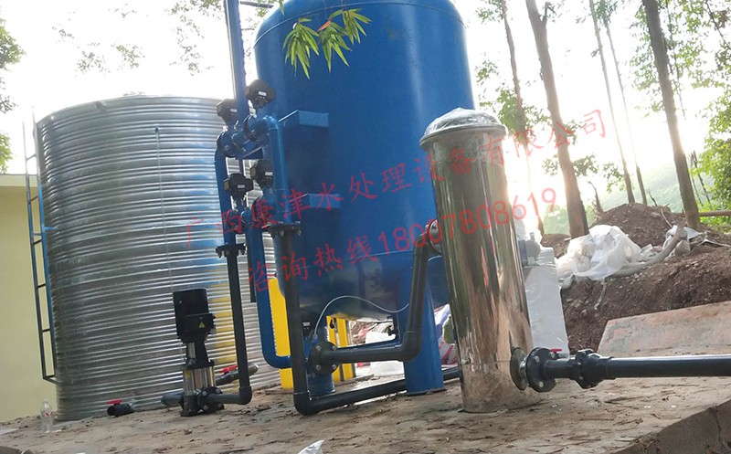 設備(bei)是壓(ya)力式(shi)的(de)(de)(de),其原理是當(dang)原水(shui)自上而(er)下通過(guo)濾料時(shi),水(shui)中(zhong)懸浮物(wu)由于吸附(fu)和機械阻流(liu)(liu)作用(yong)被濾層表面截留下來;當(dang)水(shui)流(liu)(liu)進濾層中(zhong)間時(shi),由于濾料層中(zhong)的(de)(de)(de)砂(sha)粒排列(lie)的(de)(de)(de)更緊(jin)密,使(shi)水(shui)中(zhong)微粒有更多的(de)(de)(de)機會(hui)與砂(sha)粒碰撞,于是水(shui)中(zhong)凝(ning)絮物(wu)、懸浮物(wu)和砂(sha)粒表面相互粘附(fu),水(shui)中(zhong)雜質截留在濾料層中(zhong),從而(er)得(de)到澄(cheng)清的(de)(de)(de)水(shui)質。經過(guo)濾后(hou)的(de)(de)(de)出水(shui)懸浮物(wu)可在3毫(hao)克/升以下。