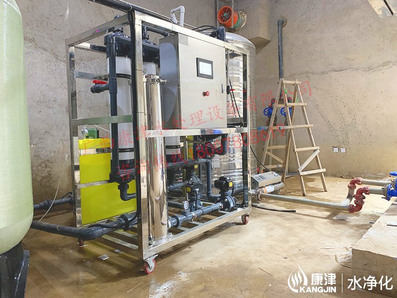 10T/H超(chao)(chao)(chao)濾(lv)(lv)水(shui)(shui)(shui)處(chu)(chu)(chu)理(li)(li)設(she)備(bei),每(mei)天(tian)產(chan)水(shui)(shui)(shui)240噸左(zuo)右,業主是廣(guang)(guang)西大(da)藤峽葛洲壩,產(chan)出(chu)的(de)(de)凈水(shui)(shui)(shui)用(yong)于漁(yu)業養殖使(shi)用(yong)。超(chao)(chao)(chao)濾(lv)(lv)水(shui)(shui)(shui)處(chu)(chu)(chu)理(li)(li)設(she)備(bei)過(guo)濾(lv)(lv)精度為0.005到0.01微(wei)米范圍內,可有(you)效去除水(shui)(shui)(shui)中的(de)(de)微(wei)粒、膠體、細(xi)菌、熱源(yuan)及高分子(zi)有(you)機物質(zhi)等。設(she)備(bei)廣(guang)(guang)泛應用(yong)于礦泉水(shui)(shui)(shui)制造、食品和(he)醫(yi)藥(yao)生產(chan)、城市(shi)中水(shui)(shui)(shui)會用(yong)等領域。設(she)備(bei)工藝流程。原(yuan)水(shui)(shui)(shui)來自于大(da)壩,進入(ru)保溫水(shui)(shui)(shui)箱(xiang)(xiang)后經高壓(ya)(ya)泵(beng)進入(ru)預處(chu)(chu)(chu)理(li)(li)系統,根據業主水(shui)(shui)(shui)質(zhi)情(qing)況,預處(chu)(chu)(chu)理(li)(li)部分我們推薦的(de)(de)是砂濾(lv)(lv)和(he)錳砂濾(lv)(lv),主要(yao)是為了軟化水(shui)(shui)(shui)質(zhi)。預處(chu)(chu)(chu)理(li)(li)產(chan)水(shui)(shui)(shui)接著(zhu)進入(ru)精密過(guo)濾(lv)(lv)器,主要(yao)是PP棉過(guo)濾(lv)(lv)工作(zuo),PP棉更換成(cheng)本低,一(yi)般3個月左(zuo)右檢查(cha)一(yi)次,看(kan)情(qing)況更換。超(chao)(chao)(chao)濾(lv)(lv)是一(yi)種以(yi)篩(shai)分為分離原(yuan)理(li)(li),以(yi)壓(ya)(ya)力(li)為推動(dong)力(li)的(de)(de)膜(mo)分離過(guo)程,所以(yi)超(chao)(chao)(chao)濾(lv)(lv)前需要(yao)增加壓(ya)(ya)力(li)泵(beng)。產(chan)出(chu)的(de)(de)凈水(shui)(shui)(shui)到水(shui)(shui)(shui)箱(xiang)(xiang)后由業主的(de)(de)抽水(shui)(shui)(shui)泵(beng)供應到用(yong)水(shui)(shui)(shui)點。在這里說下,我們看(kan)到成(cheng)套設(she)備(bei)有(you)一(yi)個黃色的(de)(de)桶,它是負(fu)責給超(chao)(chao)(chao)濾(lv)(lv)組件(jian)(jian)加藥(yao)清洗用(yong)的(de)(de),及時清理(li)(li)超(chao)(chao)(chao)濾(lv)(lv)膜(mo)內的(de)(de)雜質(zhi),保證(zheng)膜(mo)元件(jian)(jian)的(de)(de)使(shi)用(yong)壽命。