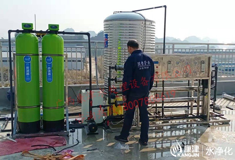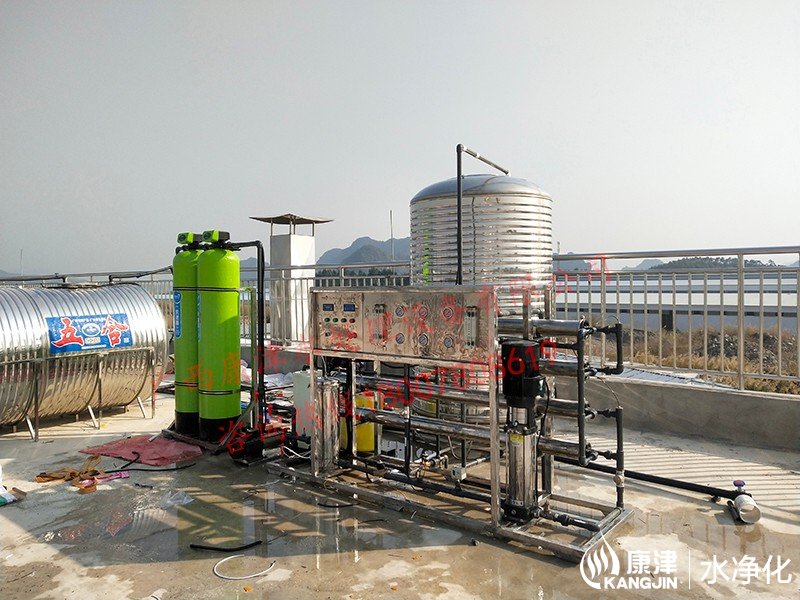 工藝流程:原水箱-原水泵-石英砂過濾器-活性炭過濾器-精密過濾器-反滲透設備-凈水箱