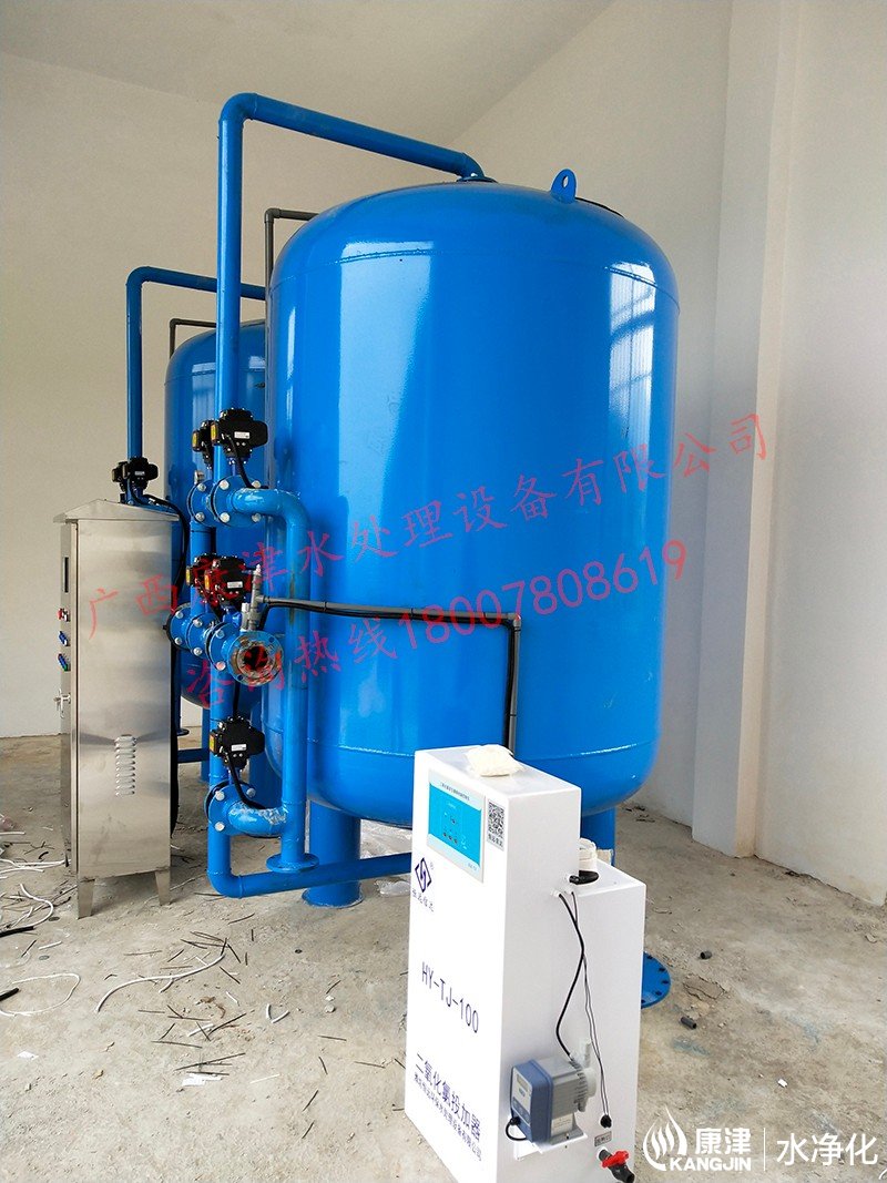 工藝流程:山泉水-石英(ying)砂過濾器-二(er)級過濾-二(er)氧化氯加藥器-用水點