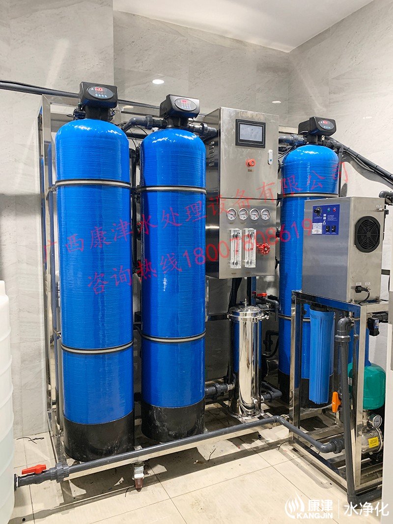 工藝流程:原水(shui)箱-原水(shui)泵-石英(ying)砂過(guo)(guo)(guo)濾器-活性炭過(guo)(guo)(guo)濾器-樹脂過(guo)(guo)(guo)濾器-精密過(guo)(guo)(guo)濾器-反滲透設備-軟(ruan)水(shui)鹽-凈(jing)水(shui)箱-變頻(pin)供(gong)水(shui)回水(shui)殺(sha)菌系統-用水(shui)點(dian)