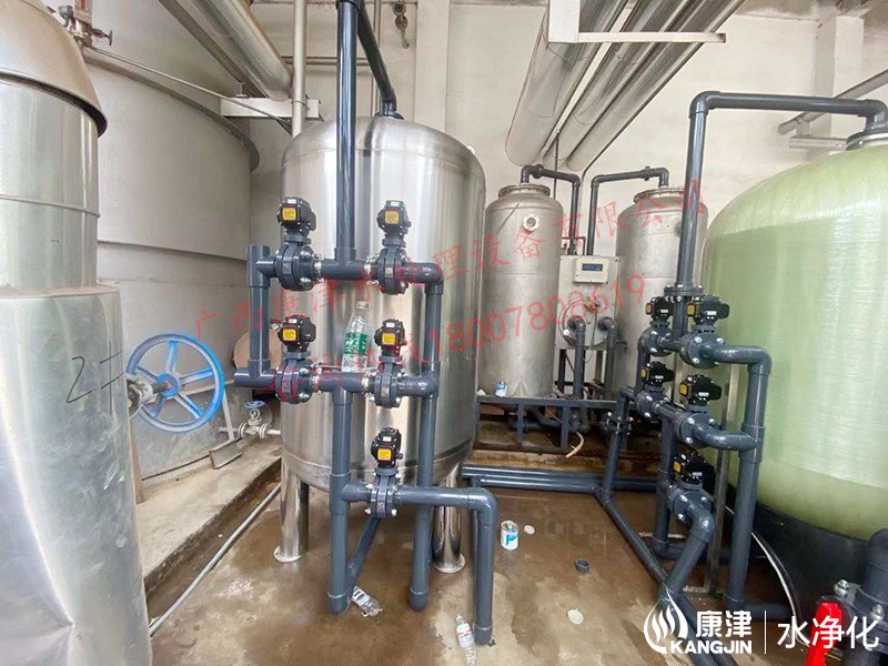 工(gong)藝流程:地下水+自來水-水箱-石英(ying)砂過(guo)濾(lv)器-軟化(hua)水設備1-軟化(hua)水設備2-精密過(guo)濾(lv)器-各用水點