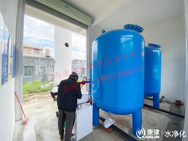 項目名稱(cheng)(cheng):貴港石寨(zhai)村地下(xia)水凈化工程 設(she)備(bei)名稱(cheng)(cheng):30噸壓(ya)力式(shi)凈水設(she)備(bei) 工藝流程:河水-石英砂(sha)過濾器(二(er)級過濾)-二(er)氧化氯(lv)消毒(du)...
