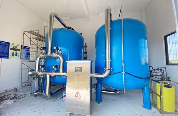 項目名稱(cheng)(cheng):農村飲水安全鞏(gong)固提升工程 設備(bei)名稱(cheng)(cheng):貴港市旺華村50噸壓(ya)力式(shi)一體化凈水設備(bei) 工藝流程:河水-絮凝加藥(yao)-沉淀過濾器-石英砂(sha)過濾器-二氧化氯(lv)消毒...
