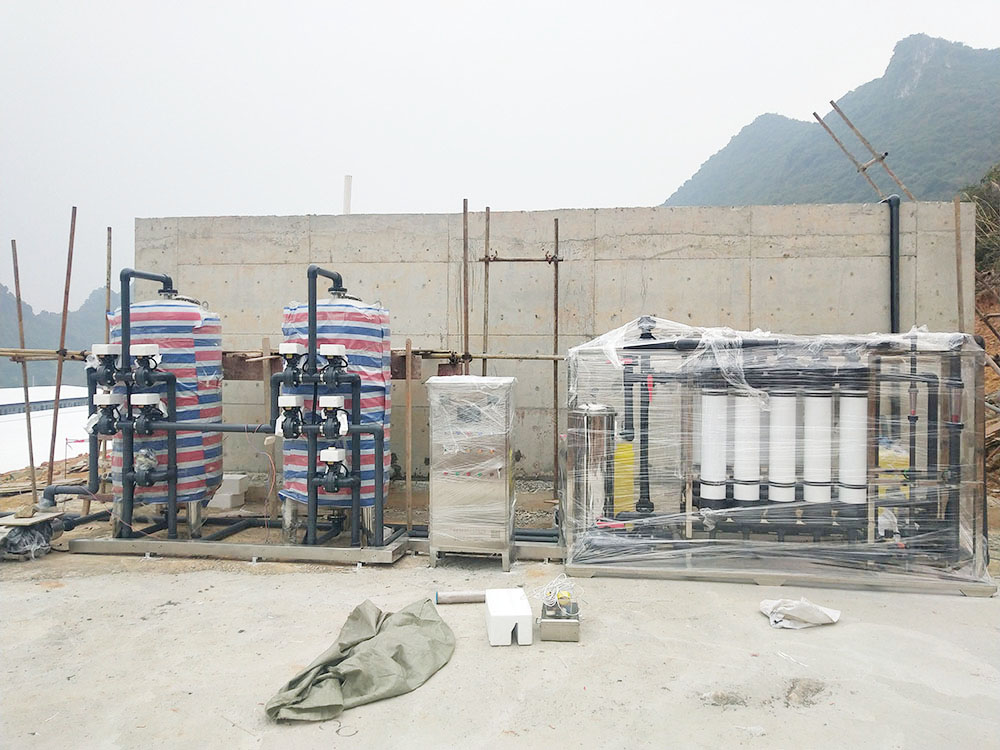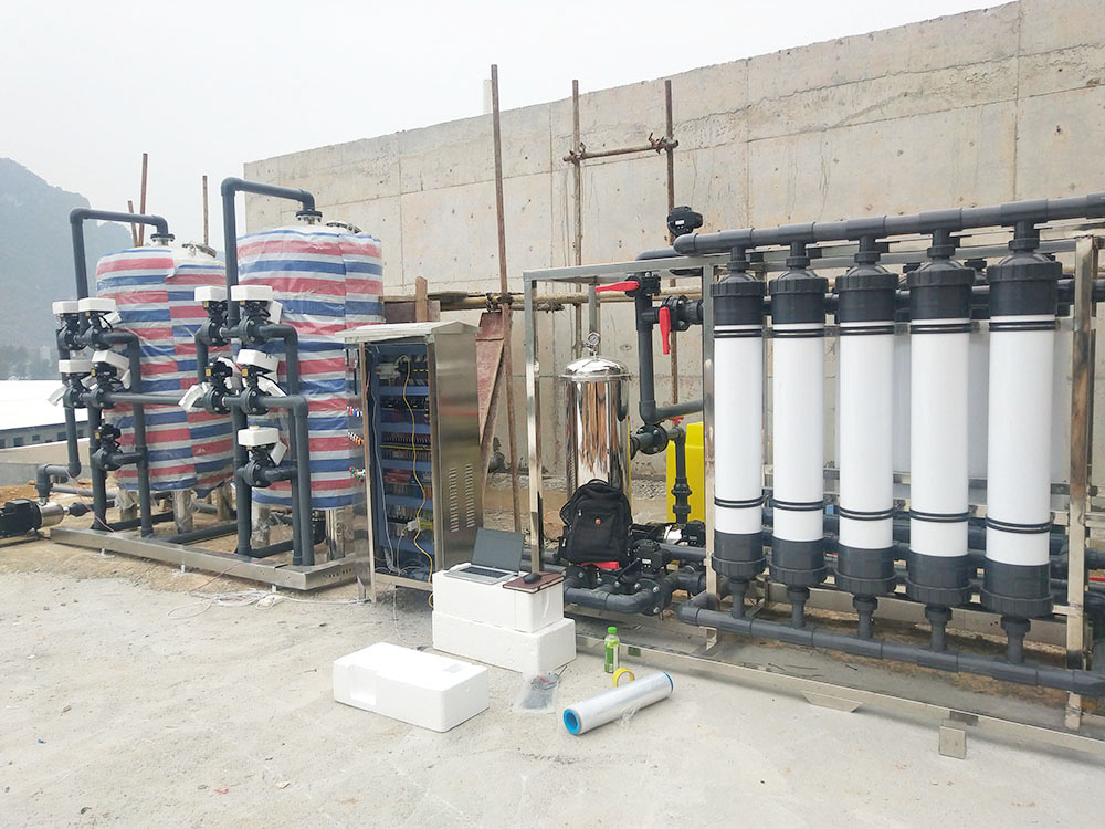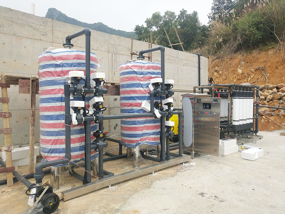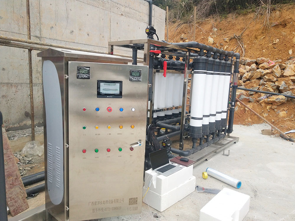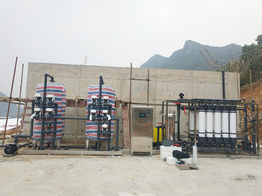 本方案主要針對原水為河水,以河水為飲用水源的地區,常常在雨季會遇到水質渾濁發黃問題。河水通常比較渾濁,水面漂浮臟東西、樹葉、水藻等,尤其在暴雨季節,水中泥沙量增加,雜質多,濁度、色度、氣味、細菌含量超標,因此必須使用專業凈水設備處理后才能達到生活飲用的目的。我們對河水的凈化主要是除去水中雜質,包括以下幾種:泥沙、大分子顆粒雜質、懸浮物、藻類、膠體,去除污染色度、異味、微生物、細菌、病毒等,有的源水會含有HCO、Ca 、SO 、Cl 、Na 、Mg 和K。為了將河水指標達到生活用水標準,通過康津超濾設備進而得到凈化。康津水處理為根據實際用途情況制定以下解決方案。用水人數大約在200至(zhi)300人,用水處理量每小時約10-12噸。