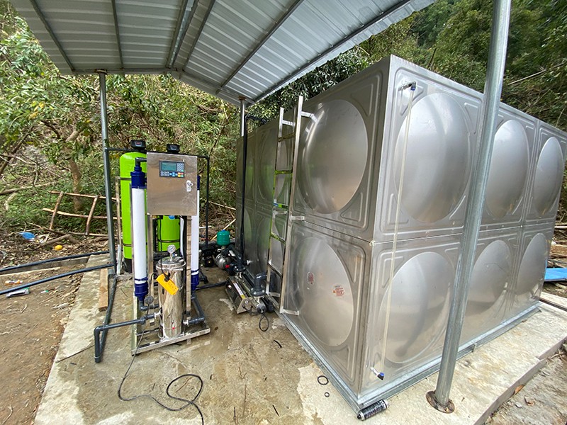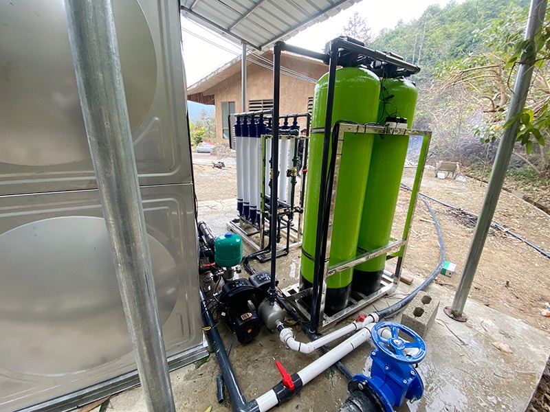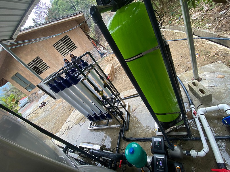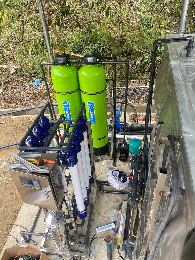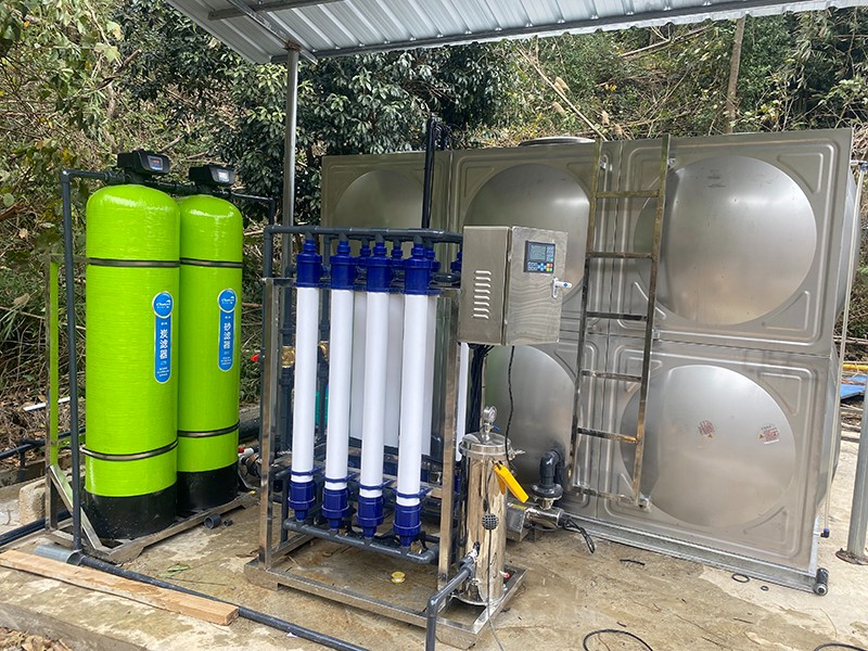 本方案主要針對原水為河水,以河水為飲用水源的地區,常常在雨季會遇到水質渾濁發黃問題。河水通常比較渾濁,水面漂浮臟東西、樹葉、水藻等,尤其在暴雨季節,水中泥沙量增加,雜質多,濁度、色度、氣味、細菌含量超標,因此必須使用專業凈水設備處理后才能達到生活飲用的目的。我們對河水的凈化主要是除去水中雜質,包括以下幾種:泥沙、大分子顆粒雜質、懸浮物、藻類、膠體,去除污染色度、異味、微生物、細菌、病毒等,有的源水會含有HCO、Ca 、SO 、Cl 、Na 、Mg 和K。為了將河水指標達到生活用水標準,通過康津超濾設備進而得到凈化。康津水處理為根據實際用途情況制定以下解決方案。用水人數大約在50至100人,用水處理量每小時約4噸。