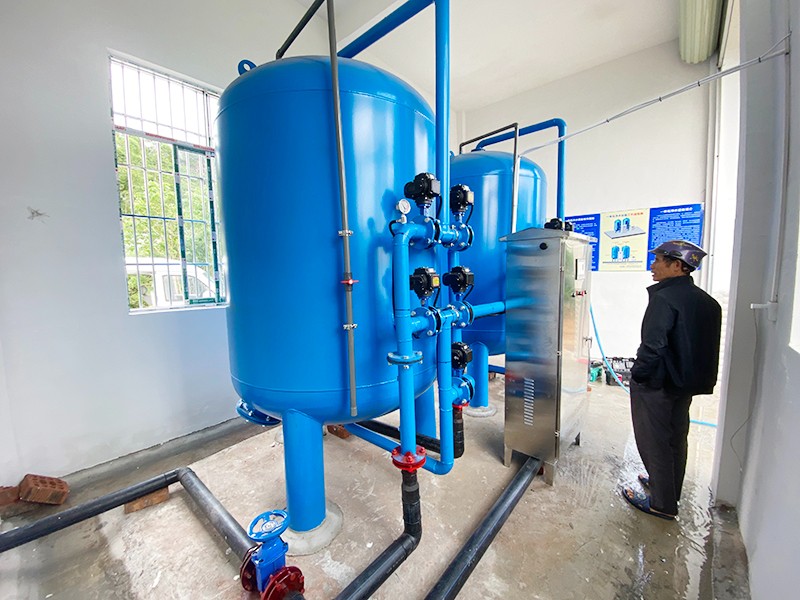 本方案主要針對原水為河水、地下水、自來水等地區,水源通常比較渾濁,水面漂浮臟東西、樹葉、水藻等,尤其在暴雨季節,水中泥沙量增加,雜質多等情況。因此利用填料來降低水中 濁度,截留除去水中懸浮物、有機物膠質顆粒,是給水凈化的重要水處理設備。康津水處理為根據實際用途情況制定以下解決方案。用水處理量每小時約20噸。