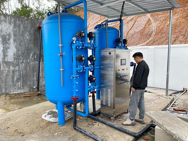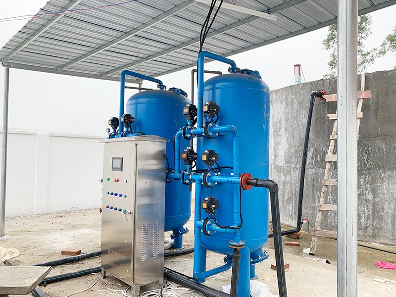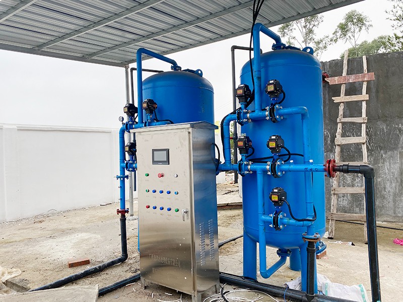 本方案主要針對原水為河水、地下水、自來水等地區,水源通常比較渾濁,水面漂浮臟東西、樹葉、水藻等,尤其在暴雨季節,水中泥沙量增加,雜質多等情況。因此利用填料來降低水中 濁度,截留除去水中懸浮物、有機物膠質顆粒,是給水凈化的重要水處理設備。康津水處理為根據實際用途情況制定以下解決方案。用水處理量每小時約5-8噸。