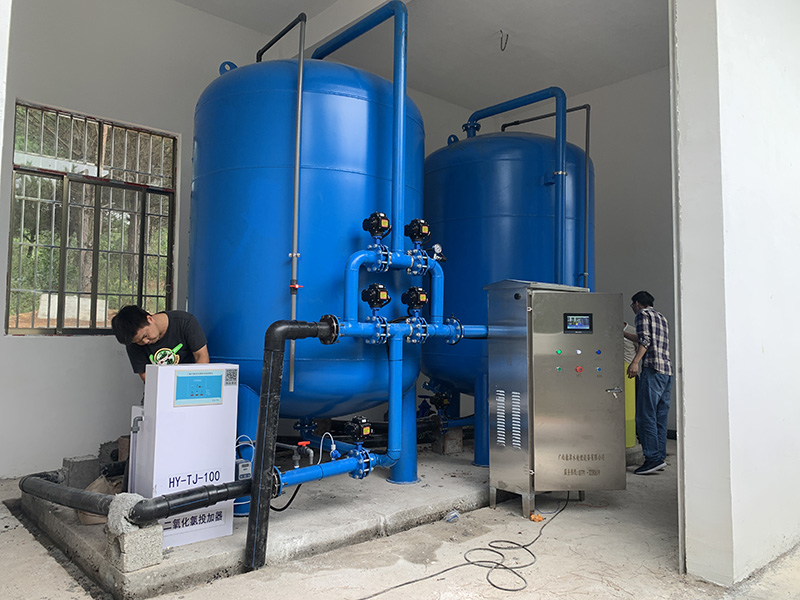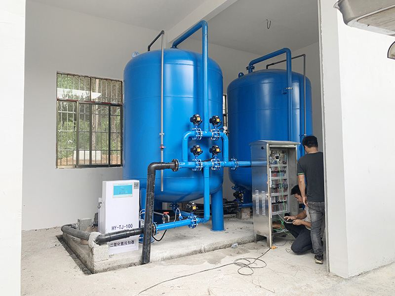 本方案主要針對原水為河水、地下水、自來水等地區,水源通常比較渾濁,水面漂浮臟東西、樹葉、水藻等,尤其在暴雨季節,水中泥沙量增加,雜質多等情況。因此利用填料來降低水中 濁度,截留除去水中懸浮物、有機物膠質顆粒,是給水凈化的重要水處理設備。康津水處理為根據實際用途情況制定以下解決方案。用水處理量每小時約30噸。